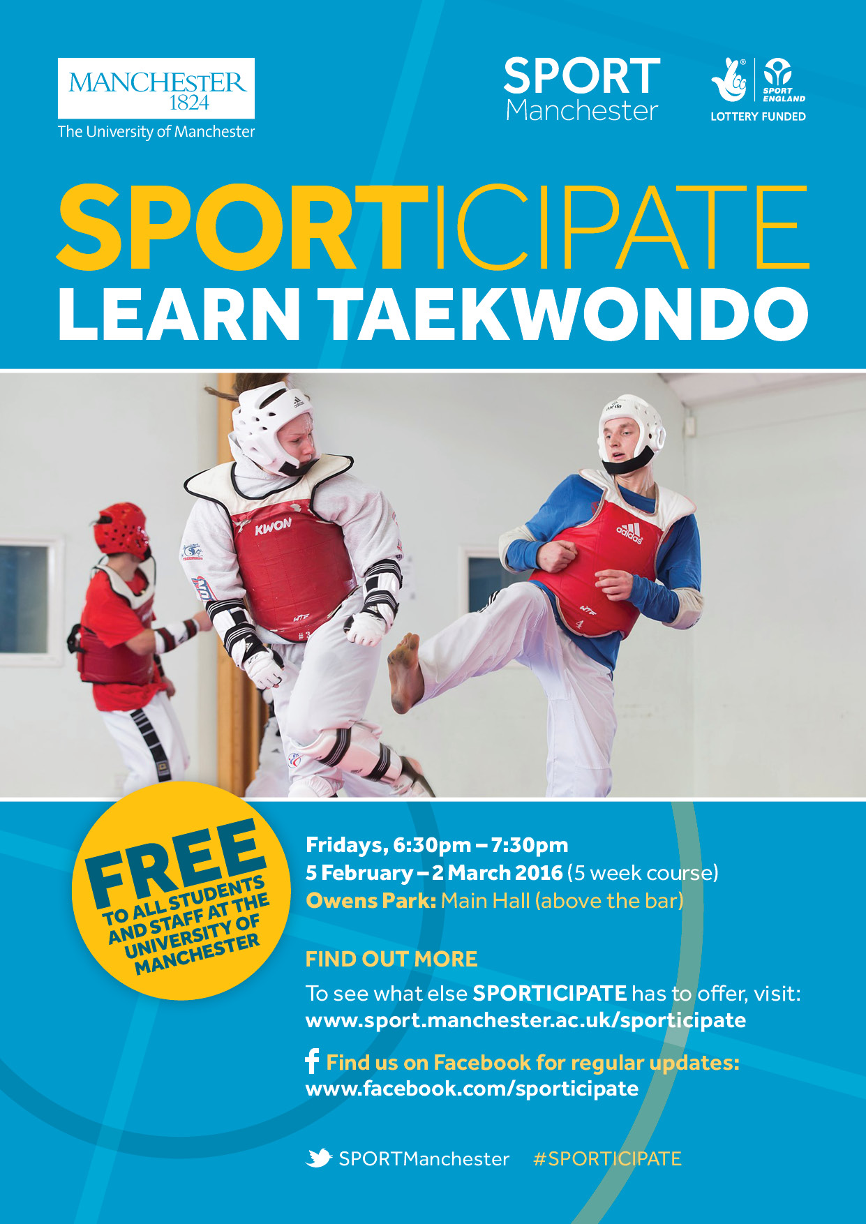 Learn Taekwondo Summary: n/a Type: Other Owner: Sport Contact email: omari.phillips@manchester.ac.uk Last modified: 25/01/2016 Link to this document: https://documents.manchester.ac.uk/display.aspx?DocID=26723 Edit (only Administrators)
