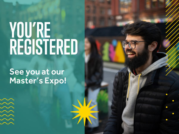 Summary: This email banner confirms attendance at The University's Master's Expo - 2026